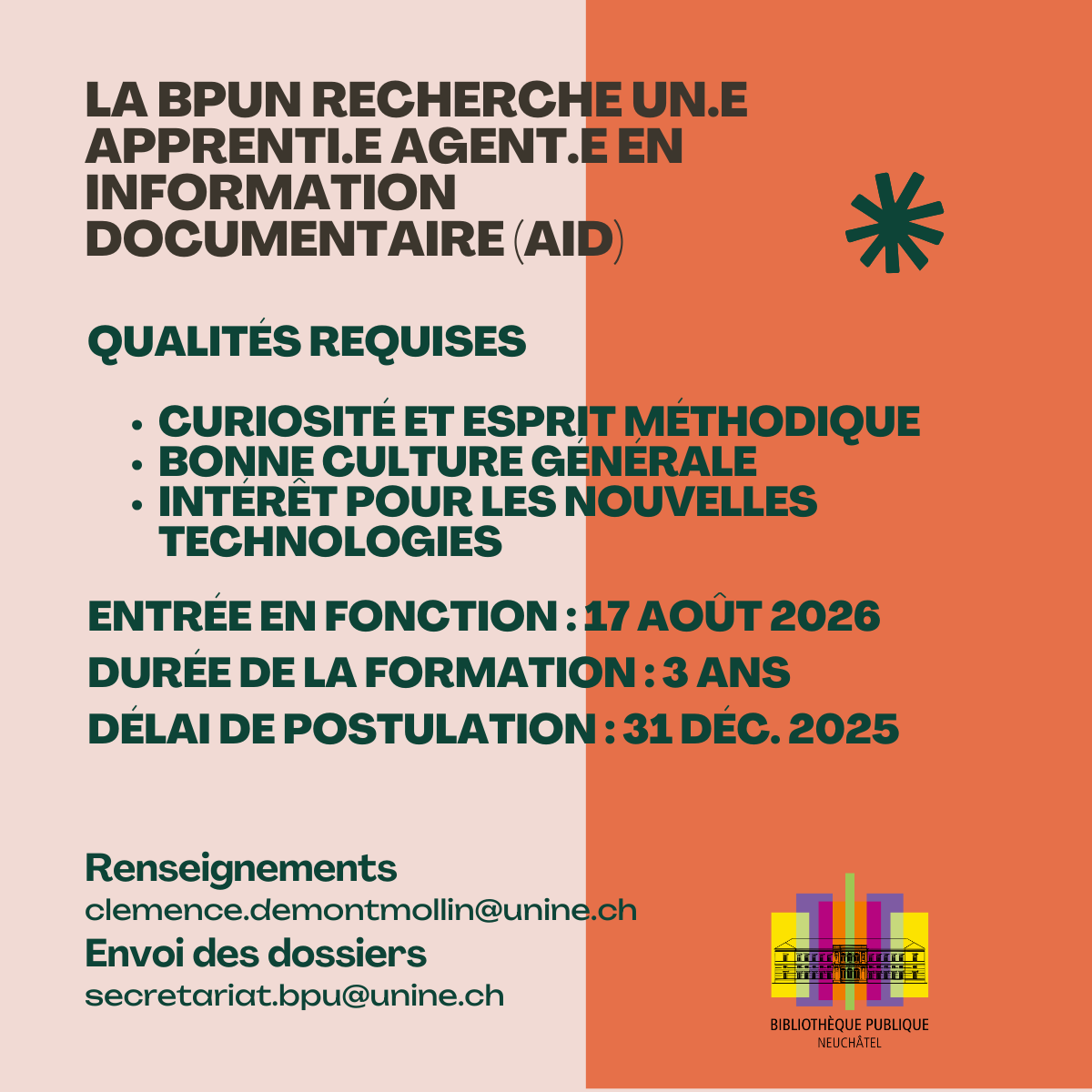 Apprentissage d'agent.e en information documentaire (AID) 2026-2029